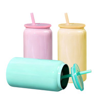 16oz glänzender Edelstahl SS304 doppelwandiger Vakuum becher mit farbigem Kunststoff-Stroh deckel 16oz Sublimations-Farb becher Mason Can