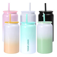 แก้วน้ำสแตนเลสพร้อมหลอดแบบซับลิเมอร์แก้วเบียร์สีรุ้งเป็นประกายดีไซน์ใหม่ล่าสุดขนาด16ออนซ์พร้อมหลอด
