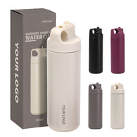 กระติกน้ำสแตนเลสผนังสองชั้นขนาด500มล. สำหรับเดินทางขวดน้ำพร้อมหลอดกันรั่วและฝาแบบถือ