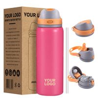 Botella de Agua Personalizada con Logotipo, de Acero Inoxidable Aislada al Vacío de 20 oz, con Doble Boca para Beber, Portátil