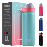 Kişiselleştirilmiş Paket Logolu 20oz Vakumlu İzole Paslanmaz Çelik Su Şişesi, Çift Ağızlı Taşınabilir Elde İçme Şişesi